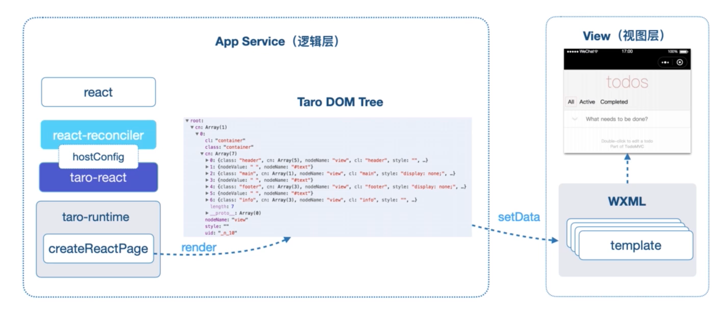 - 小程序方案:React Core + React reconciler + 宿主配置 hostConfig + 自定义渲染器 renderers