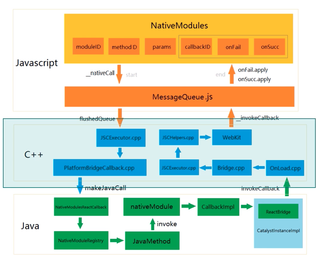 - 缺点:数据通信过程是异步的,通信成本很高,在一定程度上需要开发者了解原生开发细节
